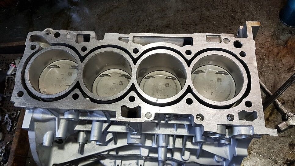 Если есть задиры/износ — расточка под ремонтный размер и хонингование с правильным микрорельефом. На G4KE критично попасть в зазоры “поршень–цилиндр” и обеспечить корректную поверхность для работы колец, иначе масложор возвращается. -