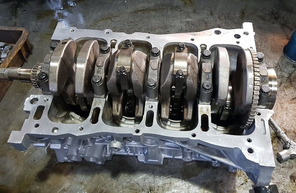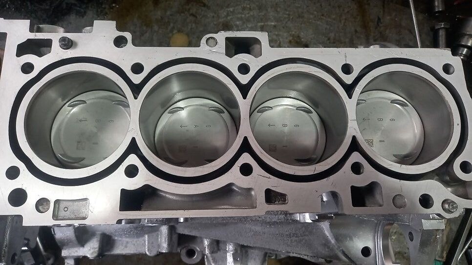 3) Блок цилиндров (низ двигателя): Разборка/сборка низа, расточка цилиндров в ремонтный размер, установка поршневой (TEIKIN, STARKMEISTER и др.), новые маслосъёмные кольца (TP, Mousson и др.), проверка/подготовка посадочных, установка новых вкладышей (MAHLE).