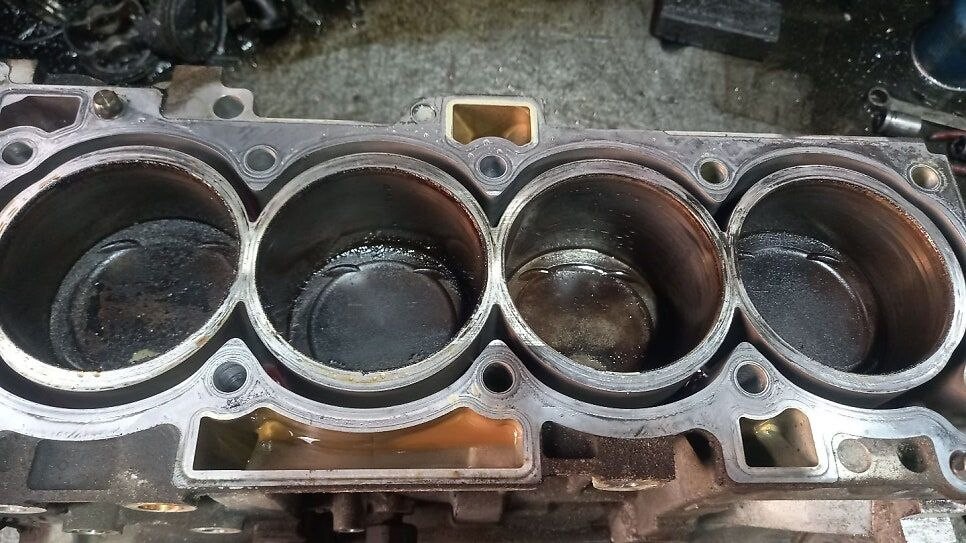Часто начинается с нарушения масляного режима: езда на низком уровне масла, затянутые интервалы замены, перегрев, плюс эксплуатация под нагрузкой. Симптомы — падение компрессии, характерные “царапины” по эндоскопии, стук поршневой, дымность и рост расхода масла.