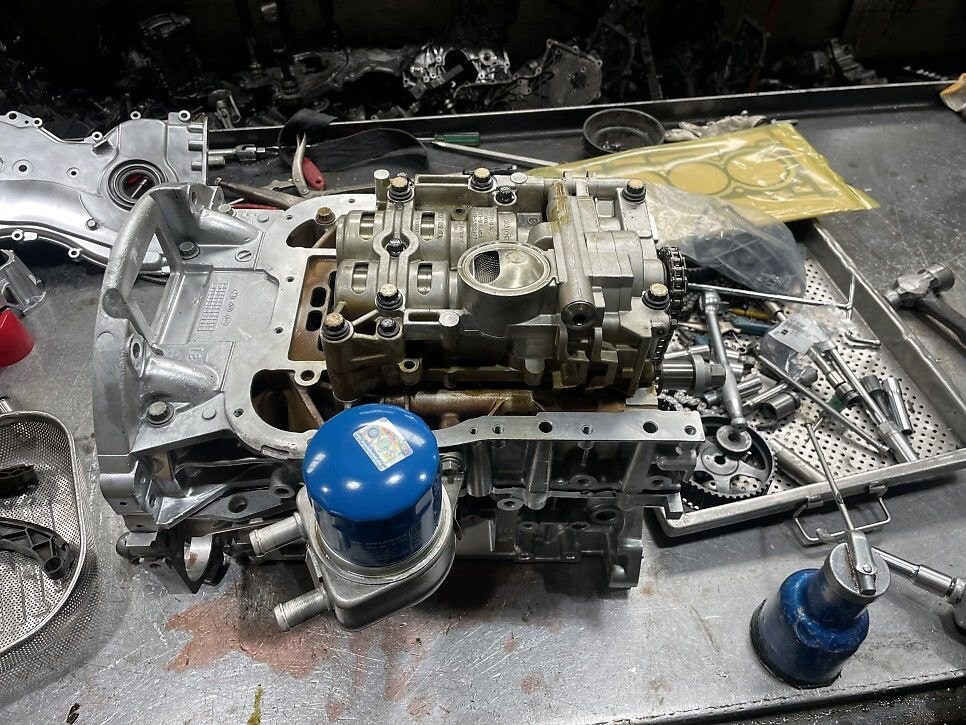 3) Блок цилиндров (низ двигателя): Разборка/сборка низа, расточка цилиндров в ремонтный размер, установка поршневой (TEIKIN, STARKMEISTER и др.), новые маслосъёмные кольца (TP, Mousson и др.), проверка/подготовка посадочных, установка новых вкладышей (MAHLE).