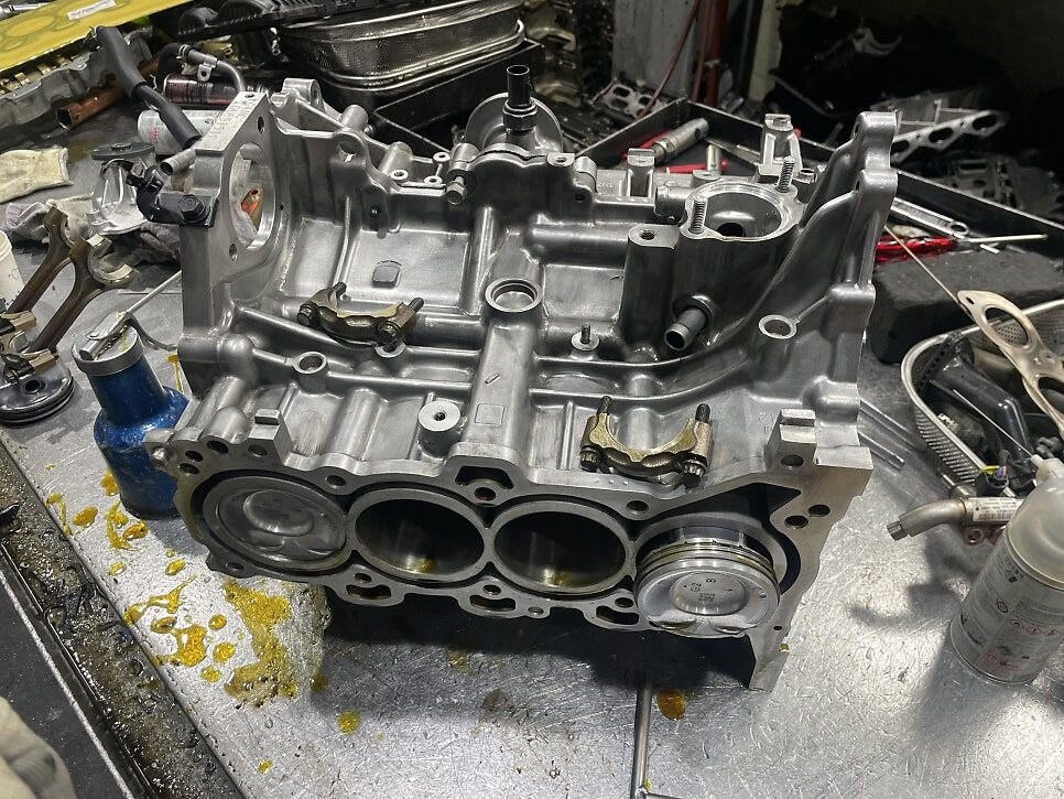 3) Блок цилиндров (низ двигателя): Разборка/сборка низа, расточка цилиндров в ремонтный размер, установка поршневой (TEIKIN, STARKMEISTER и др.), новые маслосъёмные кольца (TP, Mousson и др.), проверка/подготовка посадочных, установка новых вкладышей (MAHLE).
